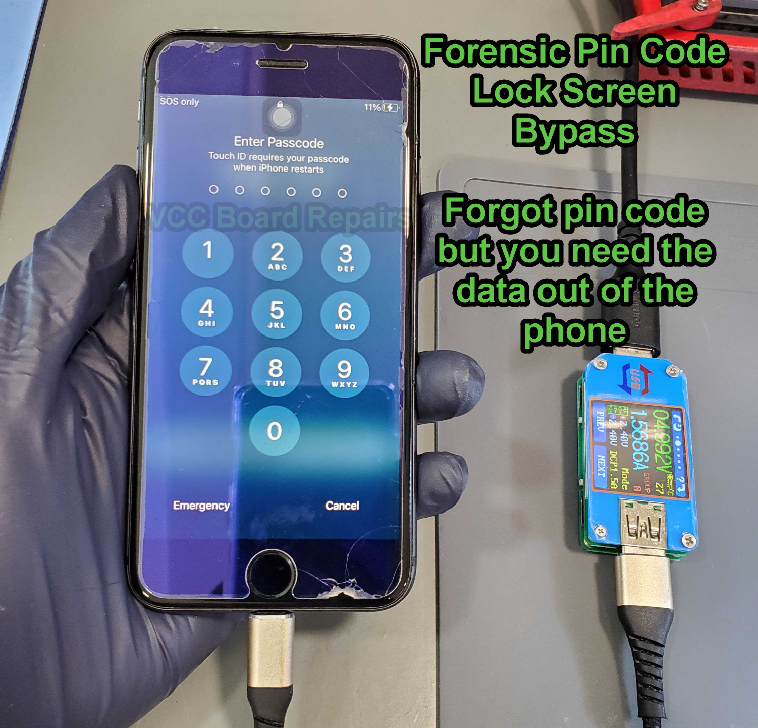 We can bypass the lock screen with special forensic tools & equipment on select models.